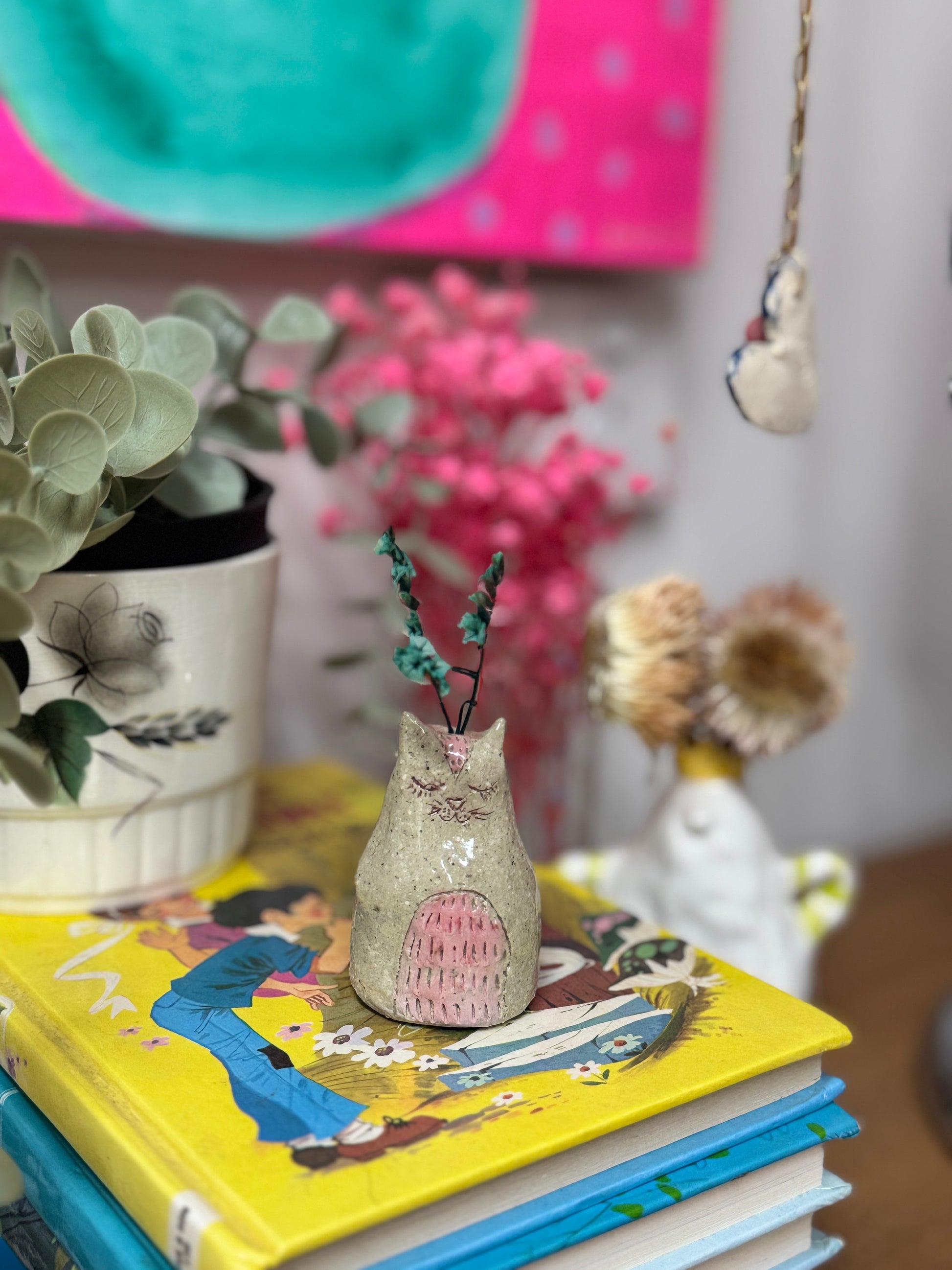 Each vase is handbuilt and one of a kind, making it a unique gift for cat lovers and ceramic collectors alike.
