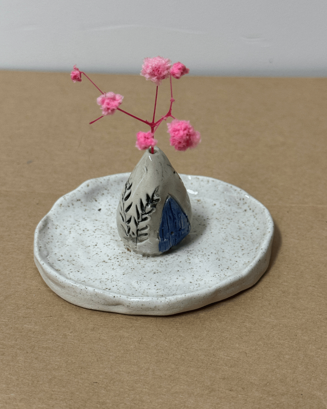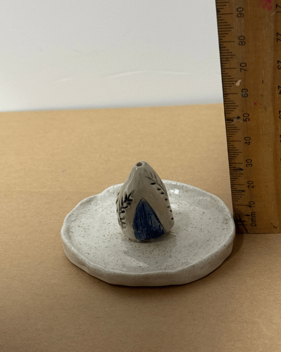 This cute little one off ceramic fairy House is designed to hold your incense sticks and the attached tray will collect the fallen pieces.