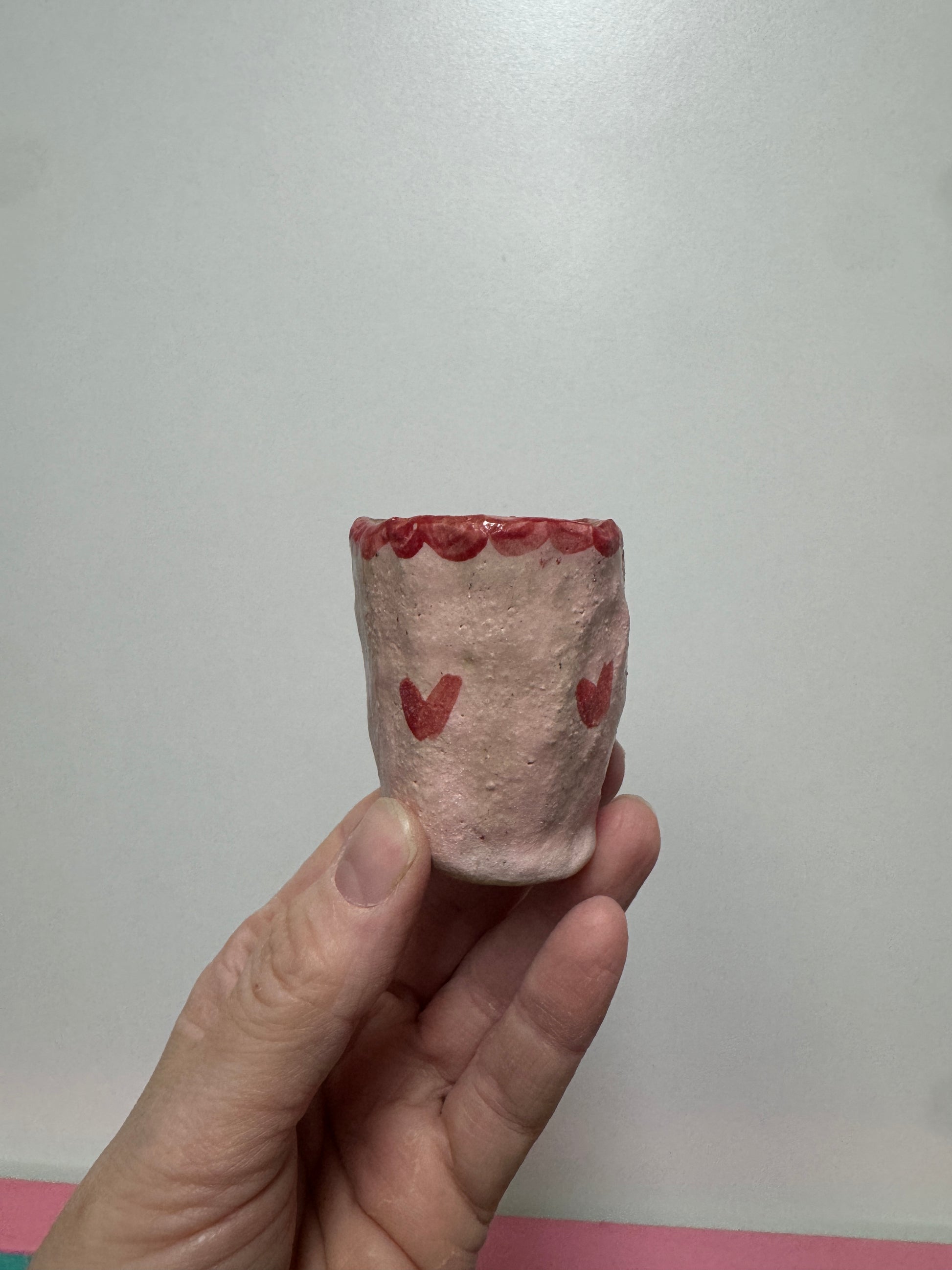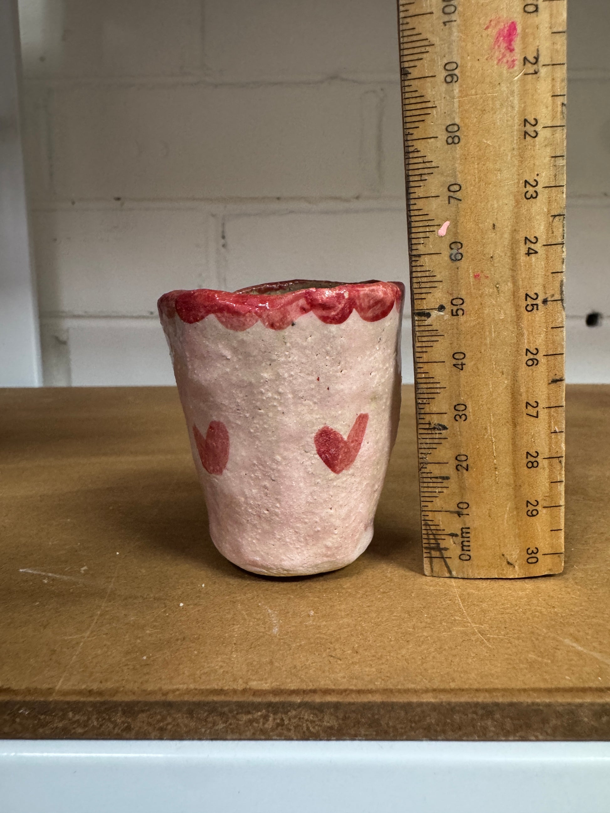 Ceramics - Handpainted Heart Vase with red scalloped edge