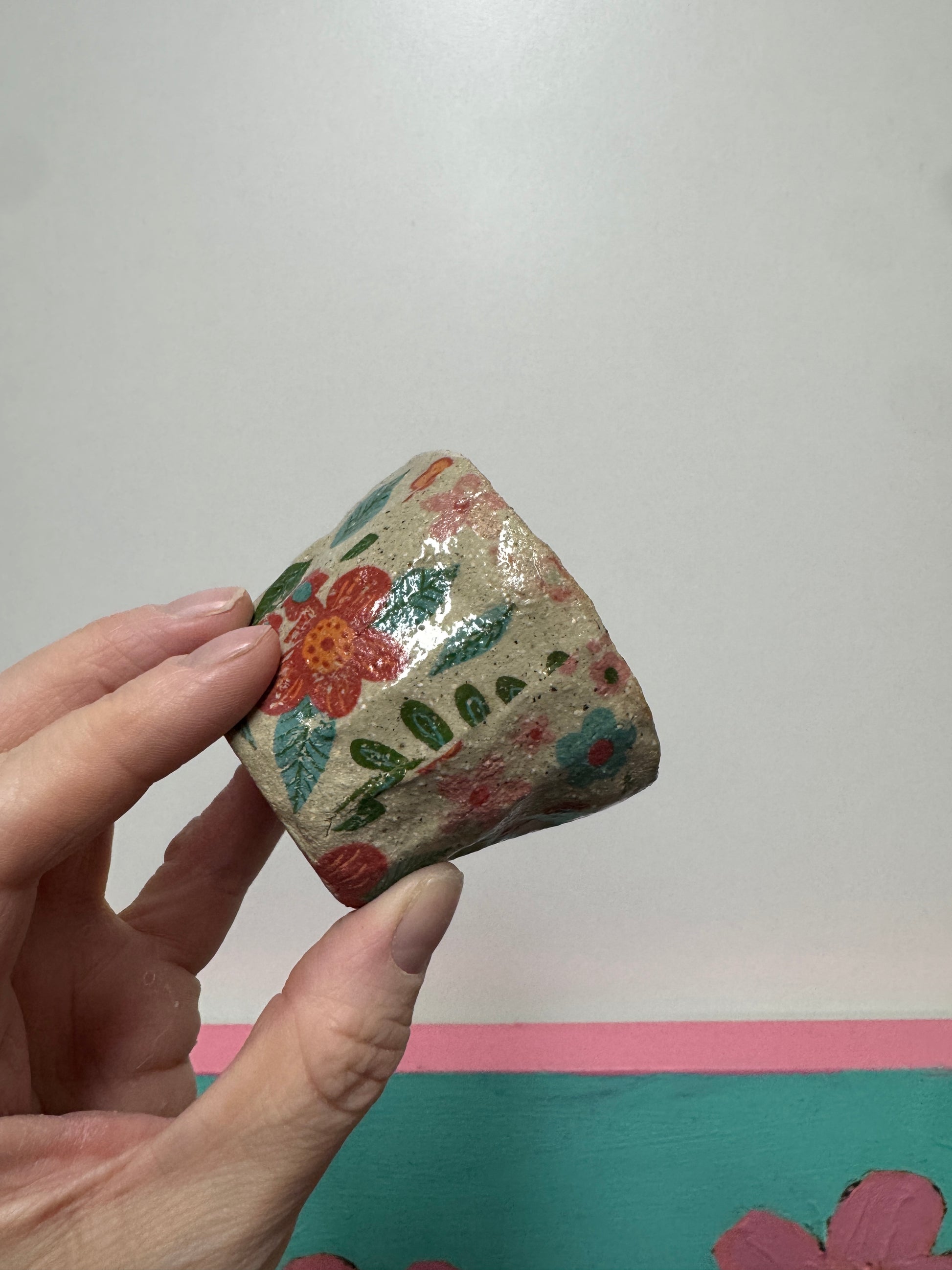 This lovely handbuilt ceramic vase features my own designed spring floral pattern.