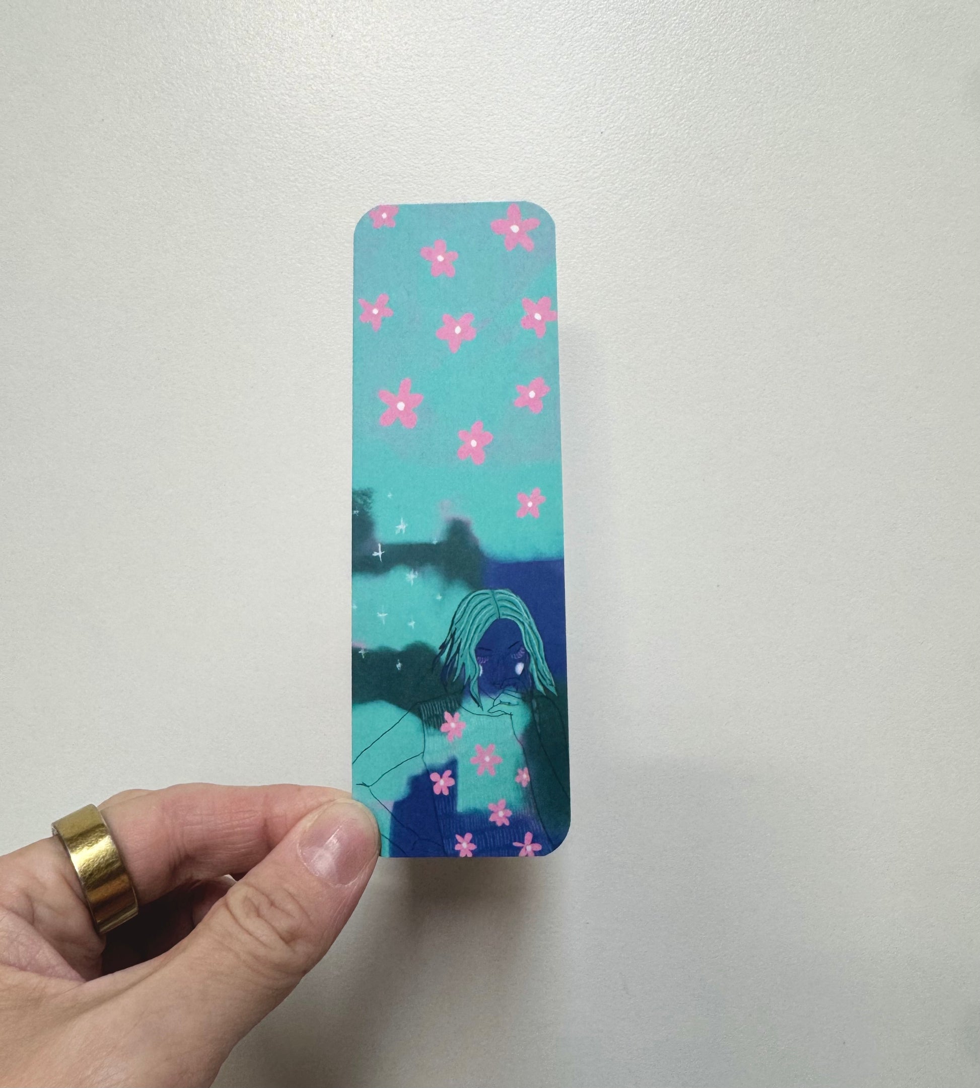 This gorgeous bookmark is lovingly designed by artist Rondelle Douglas and features a digital illustration of a female figure in deep thought.