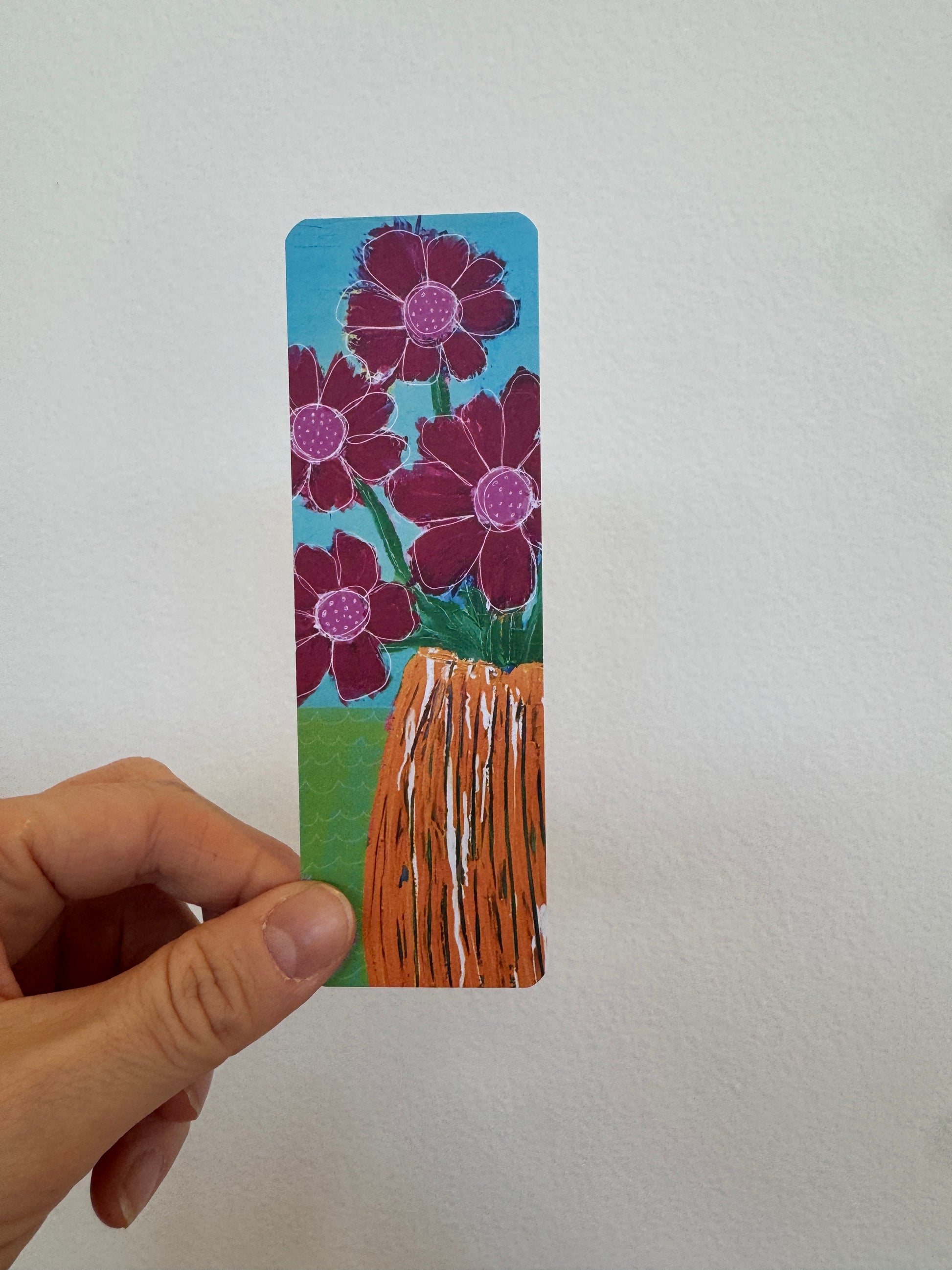This gorgeous bookmark is lovingly designed by artist Rondelle Douglas and features a painting of vase of flowers