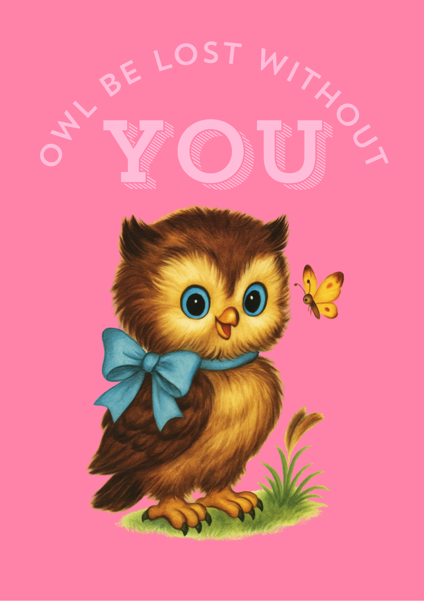 Greeting Card - Vintage Kitsch - Owl Be Lost Without you