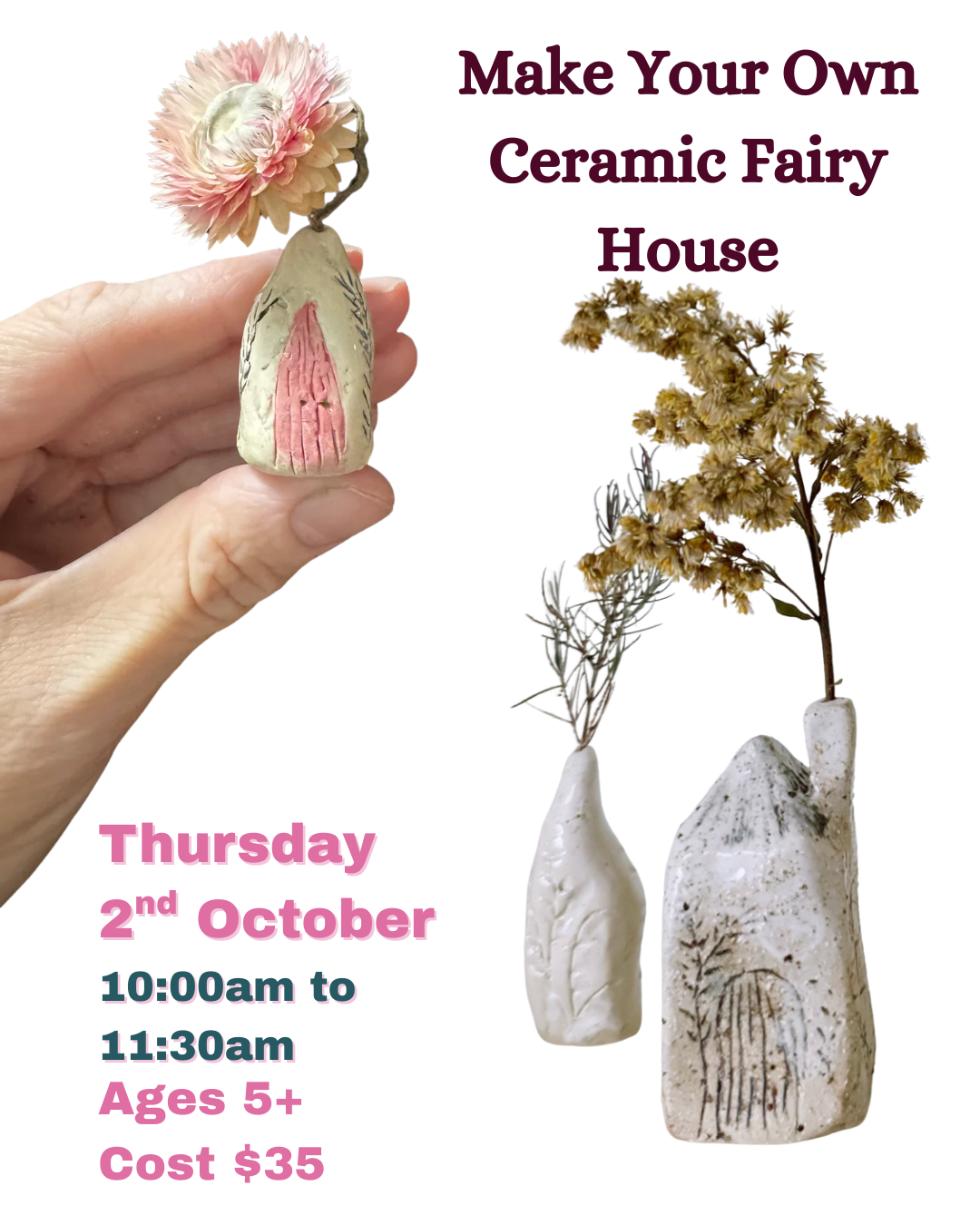 School Holiday Workshop - Ceramic Fairy Houses Thursday 2nd October - 10am-11:30am Ages 5+