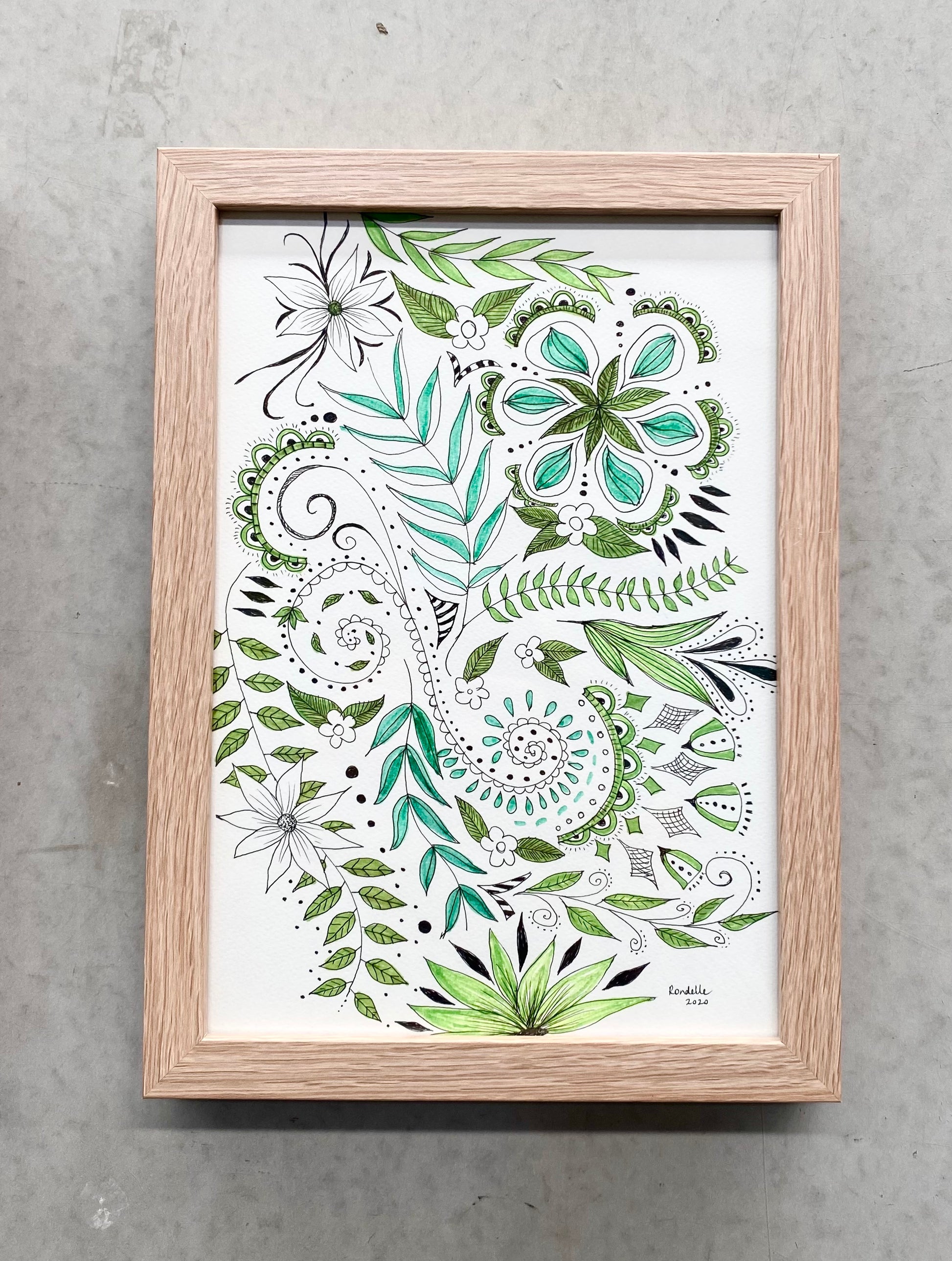 Measures 21 x 29cm in size and comes framed in an Oak look frame.